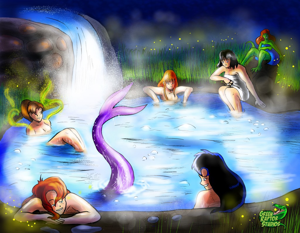 Happy last day of summer everyone, to celebrate the occasion, here’s a little project that I’ve been working on since the beginning of summer. All the Green Raptor girls enjoying a nice hotspring adventure!!! Hope you all are having a good Labor Day everyone!