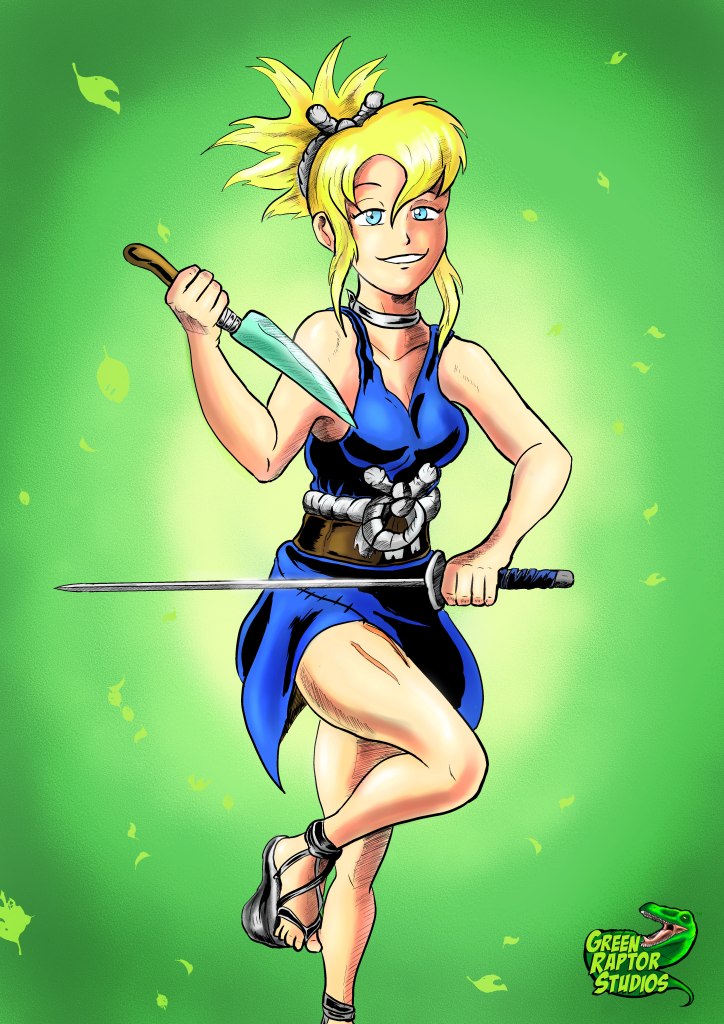 Everyone’s dressing up for Halloween, our very own Kalwa included. She dyed her hair so she could be ,my true love, Kohaku from Dr. Stone. Those who follow should know I love drawing Kohaku, and even once had both Kalwa and Kohaku meet once before. So this was such a thrill to draw, especially with the opportunity to draw Kalwa with blonde hair. I actually had just gotten the Banpresto season 2 Kohakur figure for my anime figure collection so I had a lot of reference to go off of.