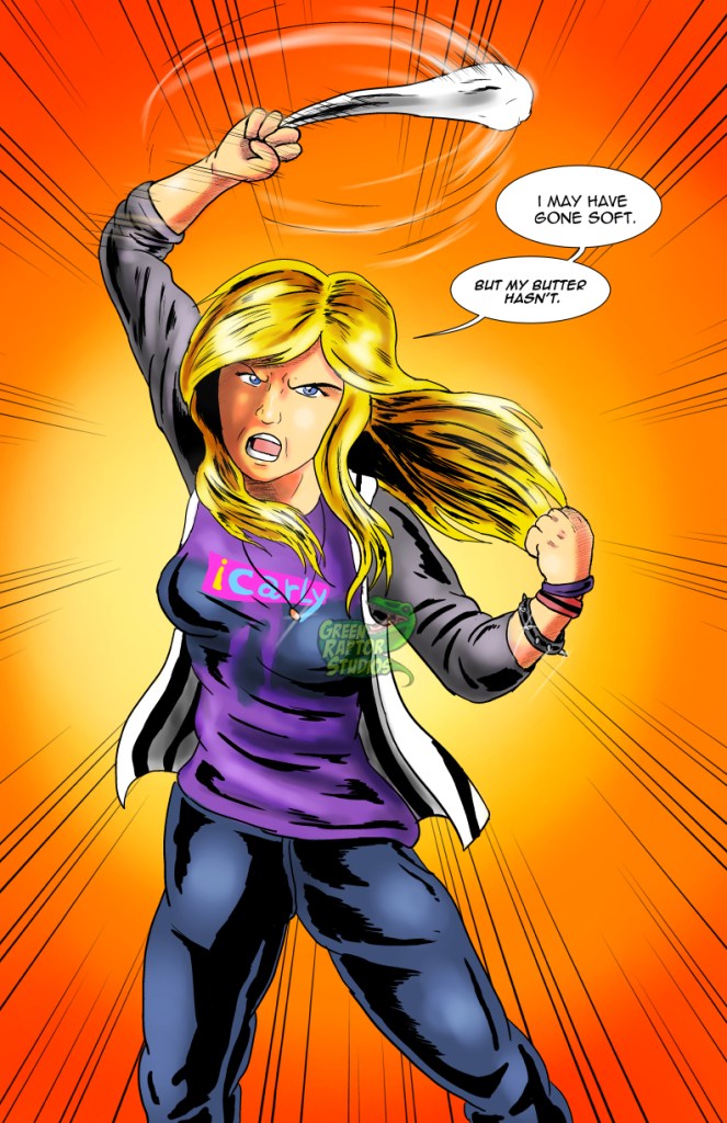 Anyway, this particular image was inspired by a shot from the Boondocks intro in which the grandad pulls off his belt and wields it like a whip. I thought such a scene would also work for Sam and her sock.